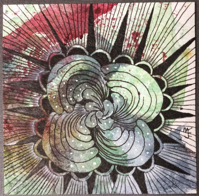 "Saint Patty's" I used a Celtic design from The Tangles of Kells for the string.  The background is a watercolour splash with salt.